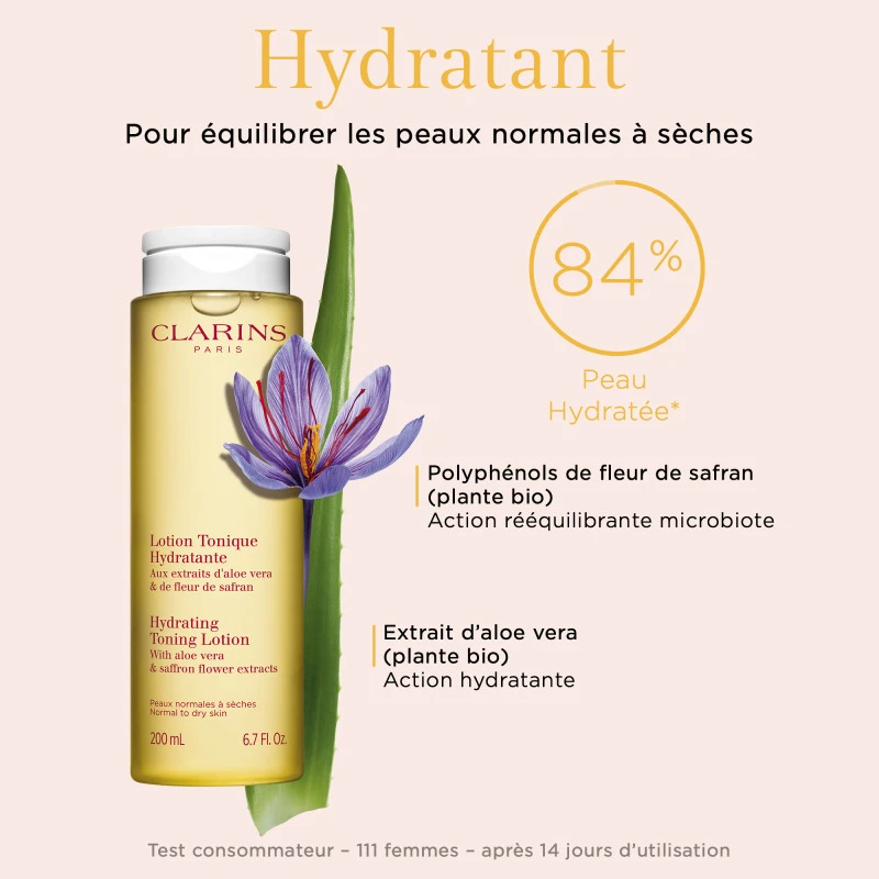 La lotion tonique Clarins, qui parfait le démaquillage et hydrate, apaise et adoucit la peau grâce à un cocktail de plantes. Dernière étape du démaquillage, cette lotion tonique sans alcool enrichie en extraits de figue bio et d’aloé vera bio, élimine les résidus de démaquillant tout en apaisant et en réconfortant la peau. Mais ce n’est pas tout… Parce qu’elle contient le [Microbiote Complex], elle optimise l’équilibre du microbiote cutané et renforce ses défenses naturelles, pour une peau en pleine santé.
