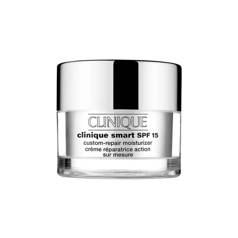 Clinique Smart SPF 15 Crème Réparatrice Action Sur Mesure repulpe et hydrate instantanément et en continu tout en optimisant le cycle naturel de réparation de la peau.