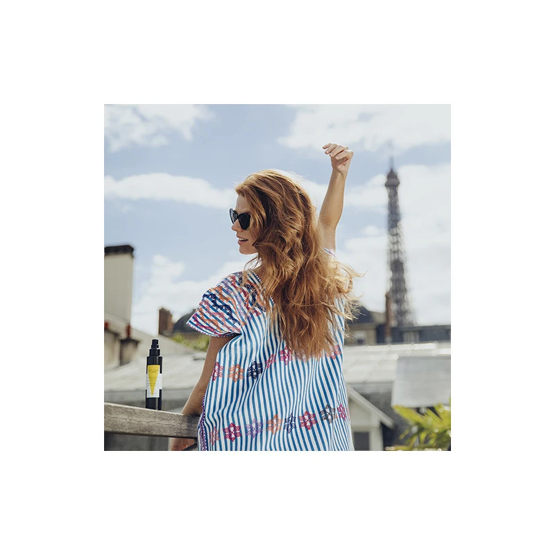 Le Fluide Protecteur Cheveux forme un film protecteur qui protège les cheveux des méfaits du soleil, de l’eau de mer et de piscine.