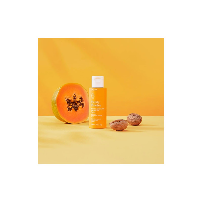 L’Extrait de Papaïne exfolie de façon enzymatique en éliminant uniquement les cellules mortes de manière sélective.