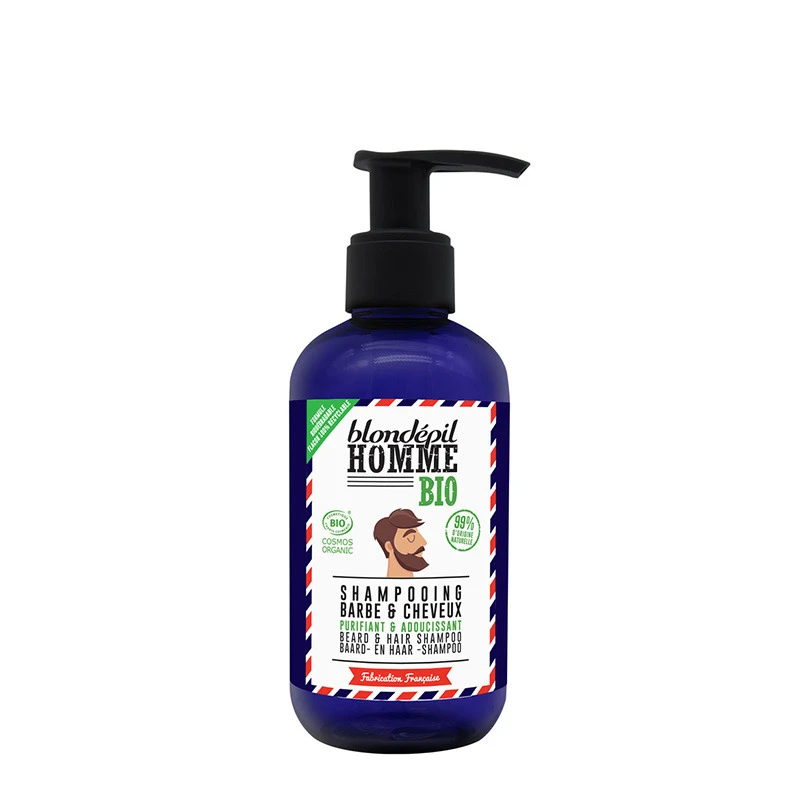 Blondépil Shampooing BARBE & CHEVEUX 3 en 1 SANS SULFATES, nettoie, purifie et adoucit la barbe et les cheveux en profondeur. Pour des cheveux et une barbe purifiés et tout doux !